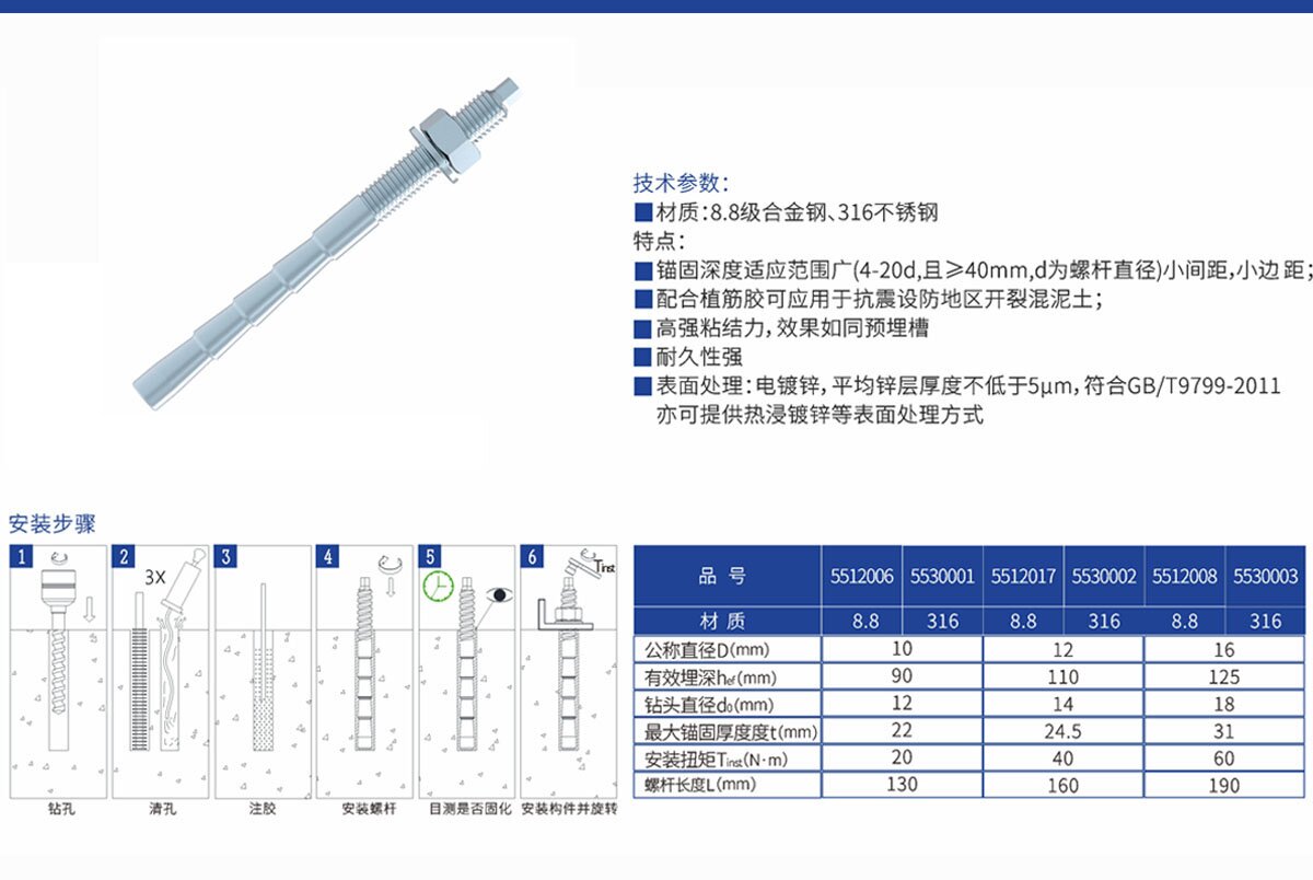 特殊倒锥形化学锚栓